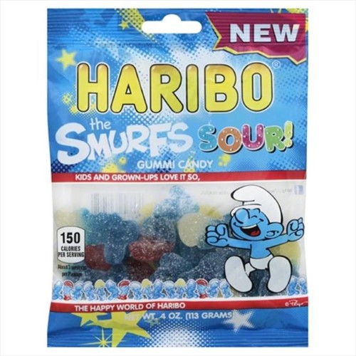 Haribo Gummi Candy, Sour Smurfs, 4 oz. Bag (Pack of 12)