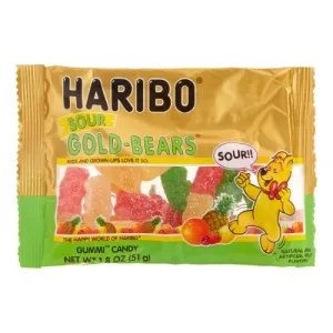 Haribo New Sour Gold-Bears Gummi Candy in 1.8 oz Individual Serving Size Bags (Case of 24)
