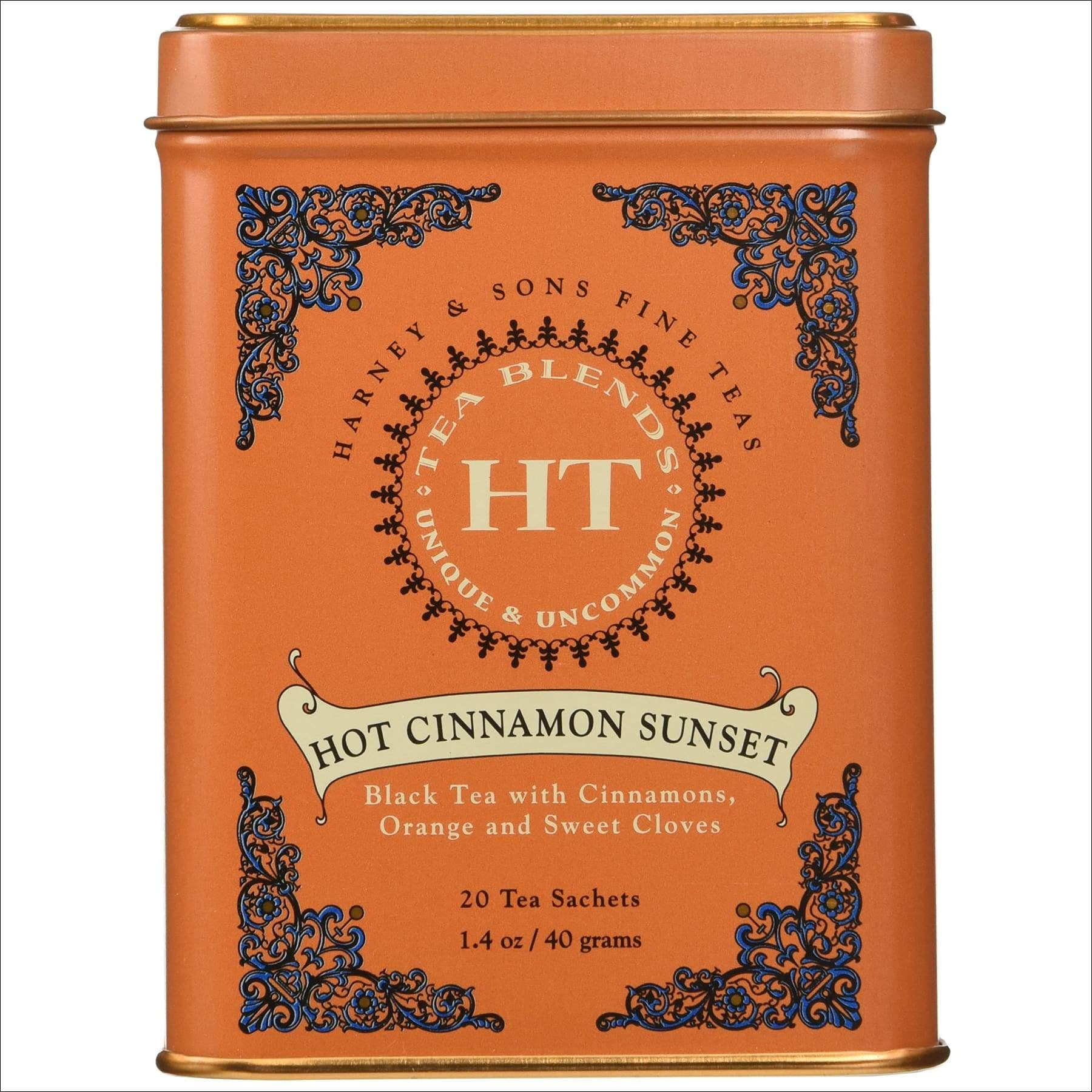 Harney & Sons Caffeinated Hot Cinnamon Sunset Black Tea with Orange and Cloves Tin 20 Sachets