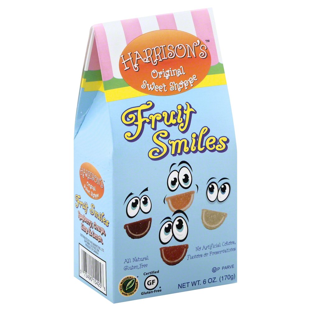 HARRISON'S ORIGINAL SWEET SHOPPE, FRUIT SMILES CANDIES, RASPBERRY, ORANGE, LIME & LEMON, RASPBERRY, ORANGE, LIME & LEMON