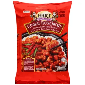 Chicken Dark Meat Fritters: Containing Up To 19% Of A Solution Of:, Water, Modified Food Starch, Soybean Oil, Dried Whole Eggs, Salt, White Pepper, Battered With: Water, Bleached Wheat Flour, Partially Hydrogenated Soybean And Cottonseed Oil, Garlic Powder, Spice, Onion Powder, Predusted With: Corn Starch, Yellow Corn Flour, Leavening (Sodium Acid Pyrophosphate, Sodium Bicarbonate), Guar Gum, Nonfat Dry Milk, Blanched In Vegetable Oil, General Tsos Sauce: Sugar, Soy Sauce (Water, Soybeans, Salt), Sake (Rice, Koji, Water, Salt), Corn Starch, Sesame Seeds, Toasted Sesame Oil, Xanthan Gum