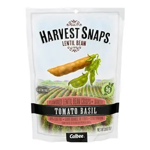 Harvest Snaps Red Lentil Snack Crisps, Tomato Basil, deliciously baked and crunchy veggie snacks with plant protein and fiber, 3-Ounce Bag (Pack of 12)