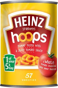 Spaghetti Hoops (42%, Water, Durum Wheat Semolina), Tomatoes, Water, Sugar, Modified Cornflour, Salt, Acid - Citric Acid, Spice, Garlic Salt, Onion Extract, Spice Extract, Iron Sulphate, Vitamin D