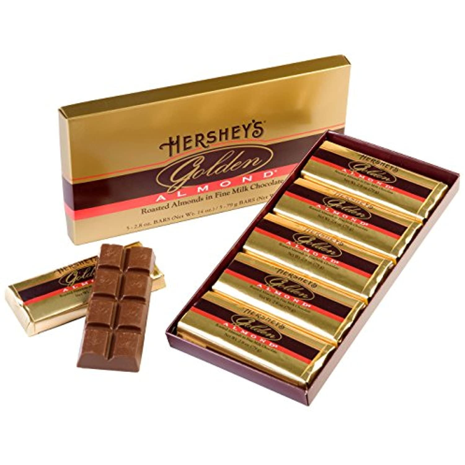 Hersheys Golden Almond Chocolate Bar, Roasted Almonds In Fine Milk Chocolate Candy Bar, Individually Wrapped Bars In Gift Box, 14 Ounce Box