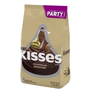 Hershey's Kisses, Milk Chocolate with Almonds Candy Party Bag, 32 Oz.