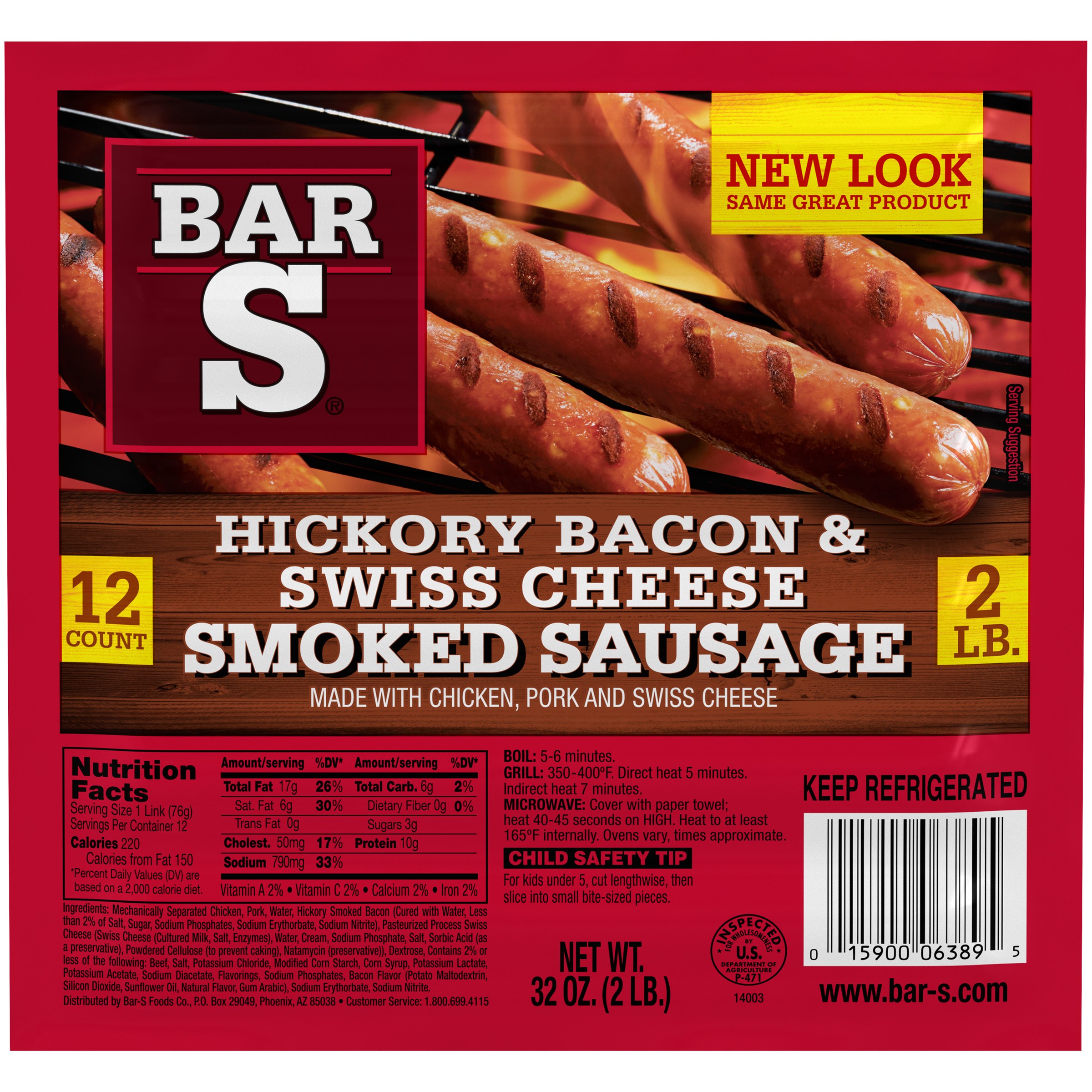 HICKORY BACON & SWISS CHEESE SMOKED SAUSAGE, HICKORY BACON & SWISS CHEESE