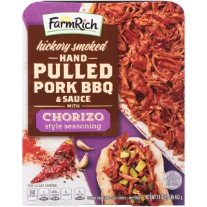 HICKORY SMOKED HAND PULLED PORK BBQ & SAUCE WITH CHORIZO STYLE SEASONING, HICKORY SMOKED WITH CHORIZO STYLE SEASONING