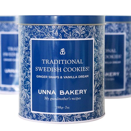 Holiday Tin with Swedish Gingerbread Snaps and award-winning Vanilla Dream Cookies. Designed for gatherings and gifting and filled with 16 cookies, 7 oz of our delicious cookies!