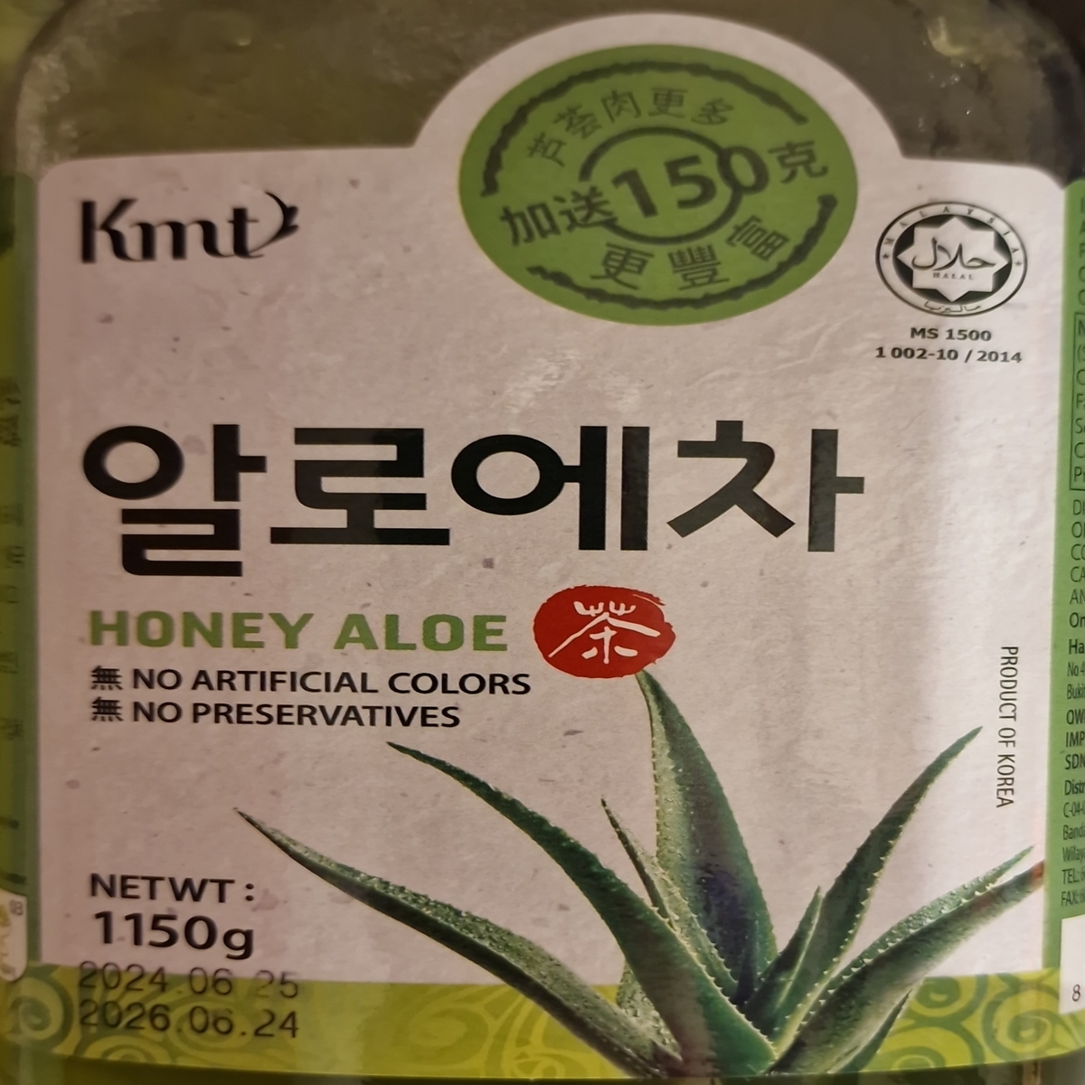 Aloe vera, Fructose, Honey, Sugar, Food blue No.1, Aloe aroma, Citric acid, Glucogel, CMC, Carrageenan, Vitamin C