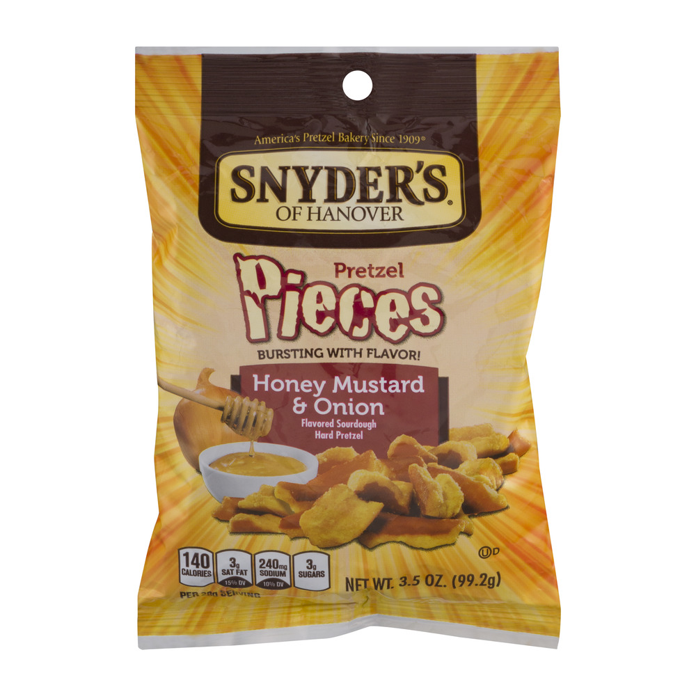 HONEY MUSTARD & ONION FLAVORED SOURDOUGH HARD PRETZEL PIECES, HONEY MUSTARD & ONION