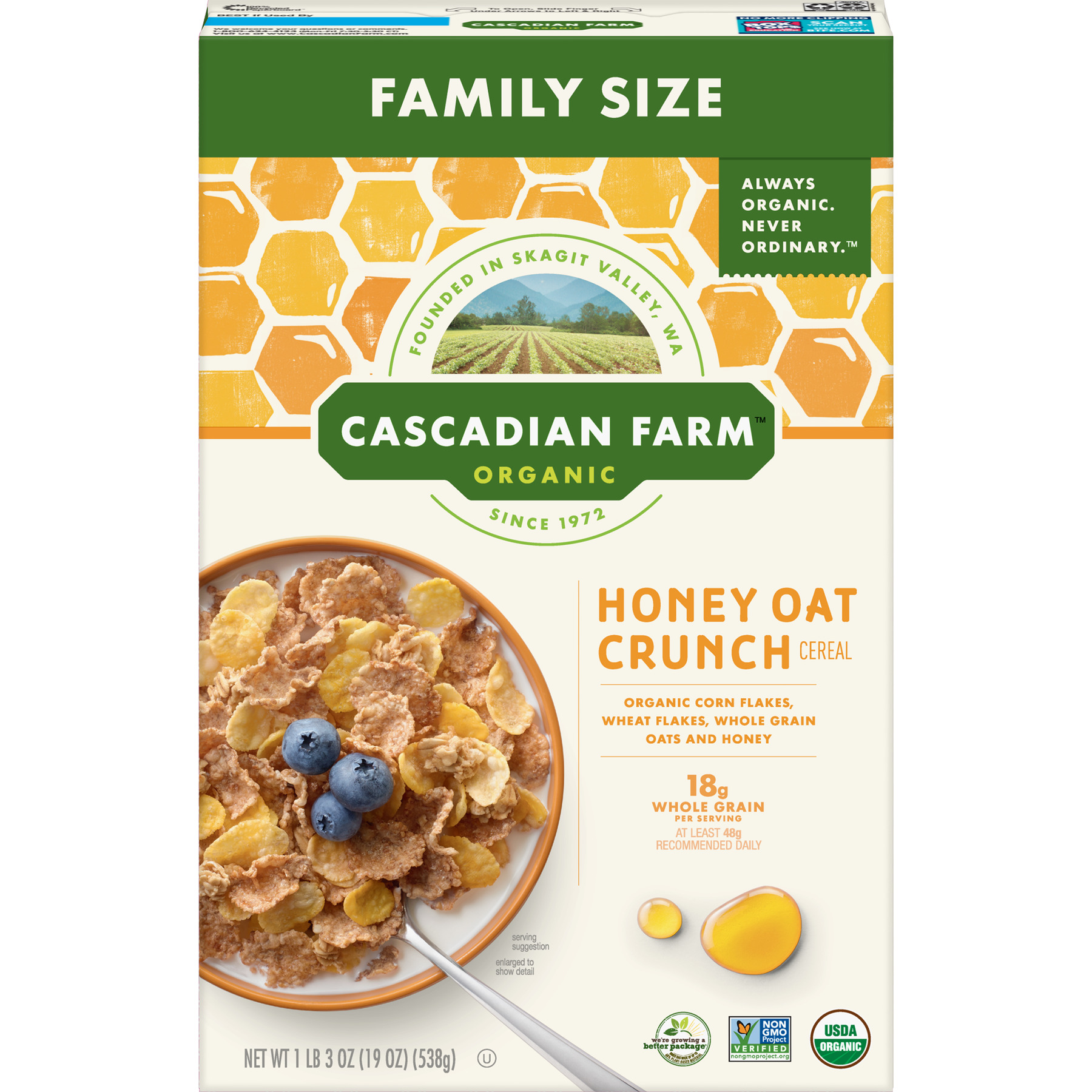 HONEY OAT CRUNCH ORGANIC CORN FLAKES, WHEAT FLAKES, WHOLE GRAIN OATS AND HONEY CEREAL, HONEY OAT CRUNCH