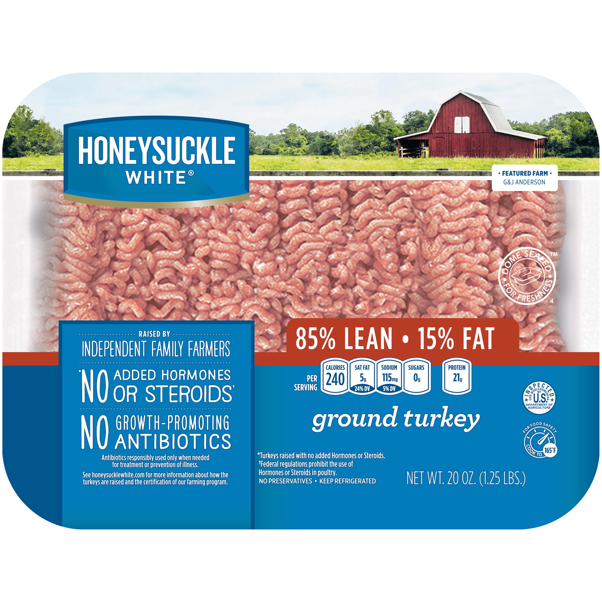 Honeysuckle White 85% Fresh Ground Turkey 1.25 lb. MAP Lidstock Tray