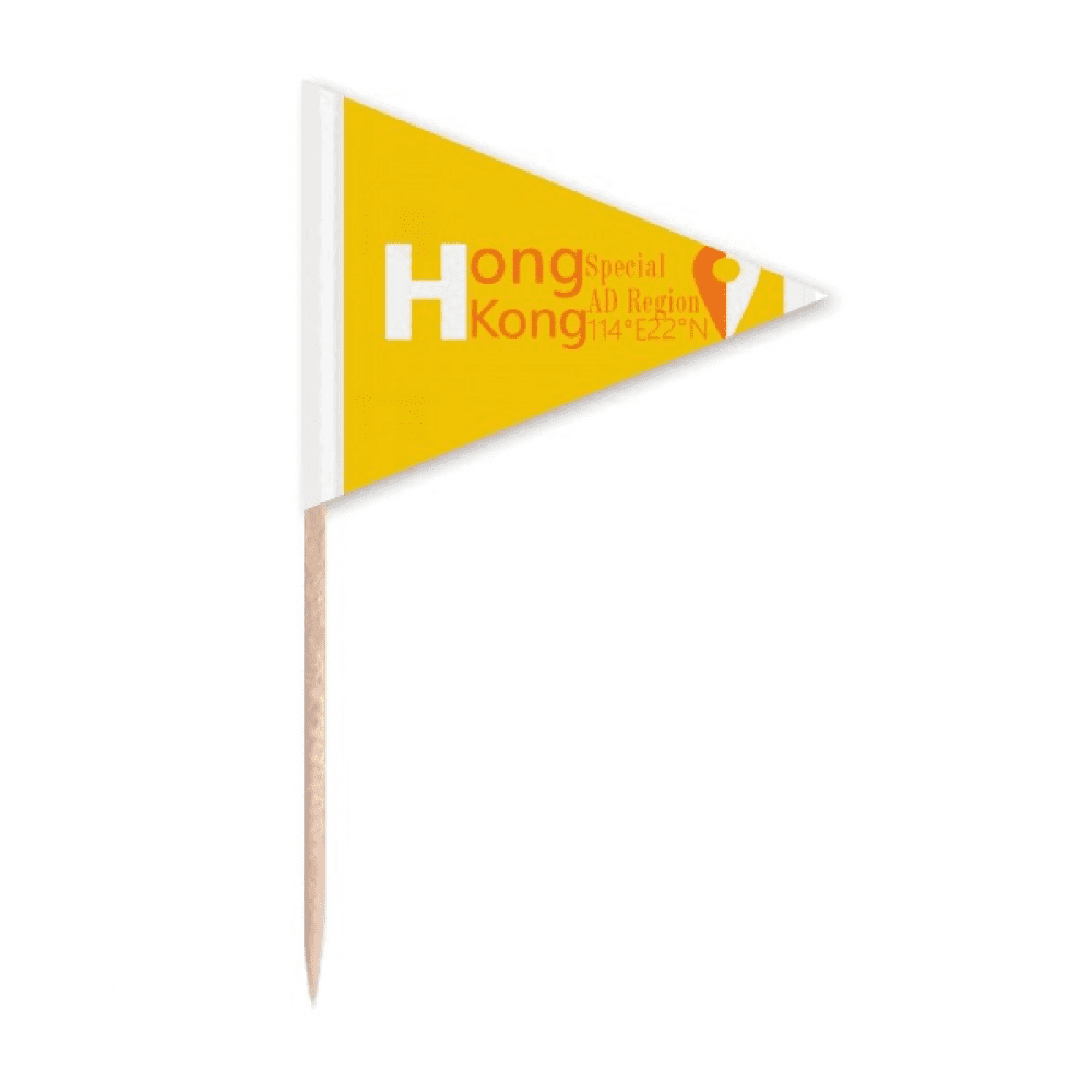 Hong Kong Geography Coordinates Trave Toothpick Triangle Cupcake Toppers Flag