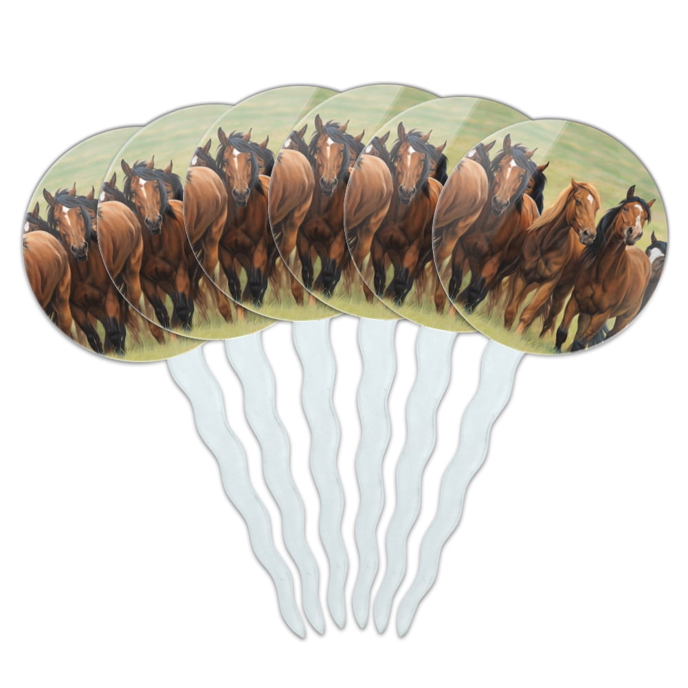 Horses on the Prairie Pecking Order Cupcake Picks Toppers Decoration Set of 6