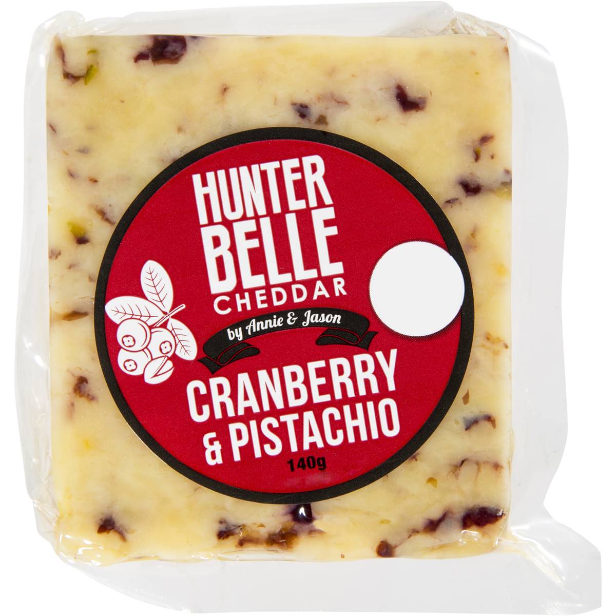 Cheddar Cheese (Milk, Rennet, Cultures, Salt), Cranberries, Crushed Pistachios.