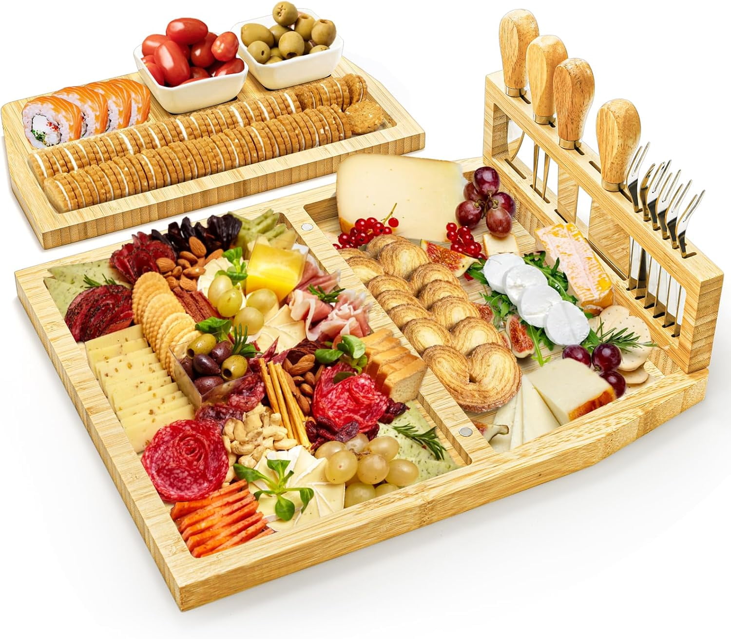 HYKE Charcuterie Cheese Boards Set, Bamboo Cheese Tray Platter with Knife B, Lightweight Meat Cheese Board, Cheese Utensils Included, que Wedding for Couple