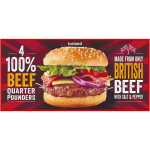 Iceland 4 100% British Beef Quarter Pounders 454 g