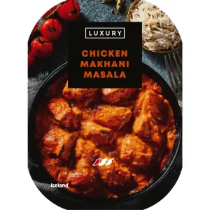 Cooked Seared Tikka Marinated Chicken, Chicken Breast , Tomato Paste, Ginger Puree, Garlic Puree, Tikka Masala Powder (Salt, Spices (Chilli Powder, Ground Fenugreek, Ground Coriander, Ground Cumin, Ginger Powder, Ground Cinnamon, Ground Black Pepper, Mace, Ground Star Anise, Turmeric Powder), Colour: Paprika Extract, Dried Basil), Yogurt Powder (Milk), Cornflour, Green Chilli Puree), Single Cream (Milk), Water, Tomato Paste, Butter (Milk), Rapeseed Oil, Honey, Garlic Puree, Ginger Puree, Cornflour, Yogurt (Milk), Spices, Coriander Leaf, Salt, Garam Masala (Ground Coriander, Ground Cumin, Ground Black Pepper, Ground Cinnamon, Ground Cloves, Ground Cardamom), Sugar, Flavouring