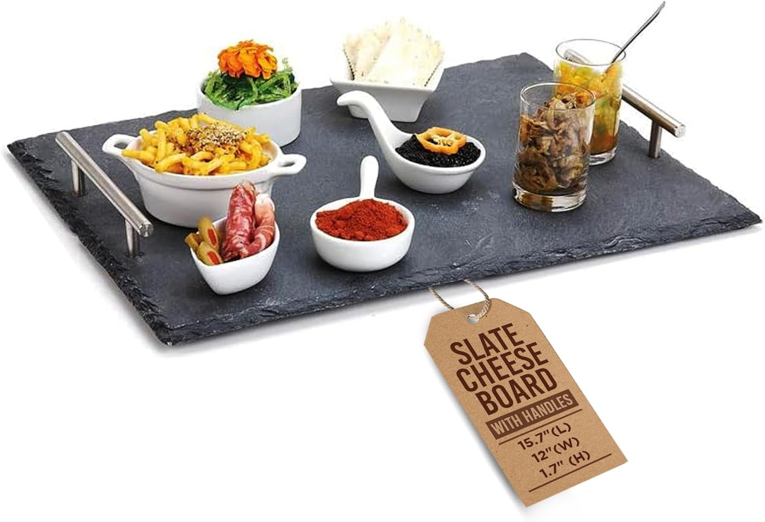 IMPULSE! Slate Cheese Board Party Tray with Handles: 15.7''L x 12''W x 1.7''H