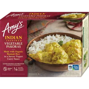 Organic Lowfat Yogurt (Organic Pasteurized Lowfat Milk, Organic Sweet Cream), Organic Basmati Rice, Pakoras (Organic Potatoes, Organic Garbanzo Bean Flour, Organic Cauliflower, Water, Organic Spinach, Organic Onion, Organic Ginger Puree, Sea Salt, Organic Garlic Puree, Organic Anaheim Peppers, Organic Sunflower Oil, Mango Powder, Baking Powder, Spices, Organic Black Pepper), Filtered Water, Organic Onions, Organic High Oleic Safflower And/Or Sunflower Oil, Organic Garbanzo Bean Flour, Sea Salt, Organic Ginger, Spices, Organic Garlic, Turmeric, Fenugreek Leaves, Paprika, Organic Asafoetida Powder.
