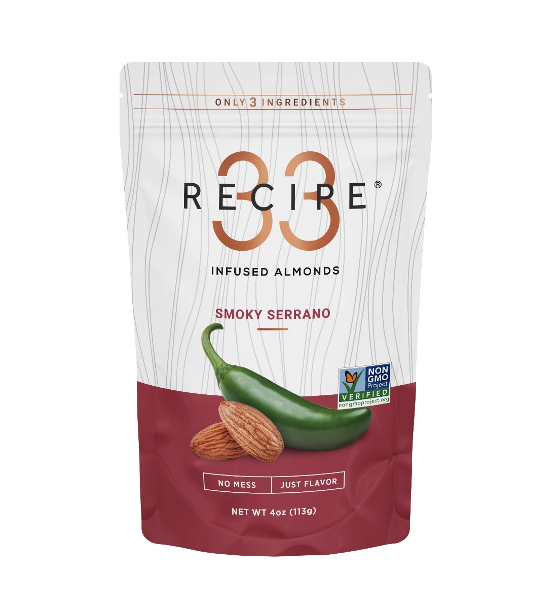 ALMONDS, SMOKY SEA SALT, SERRANO PEPPERS.