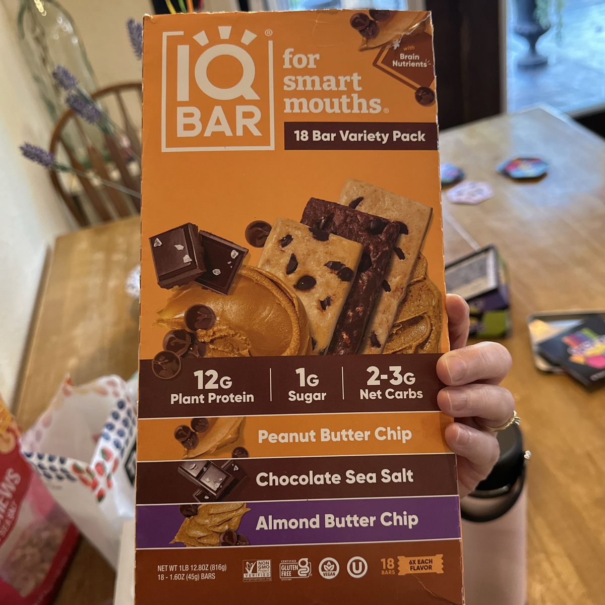 IQBAR 18 Bar Variety Pack - Peanut Butter Chip, Chocolate Sea Salt, Almond Butter Chip