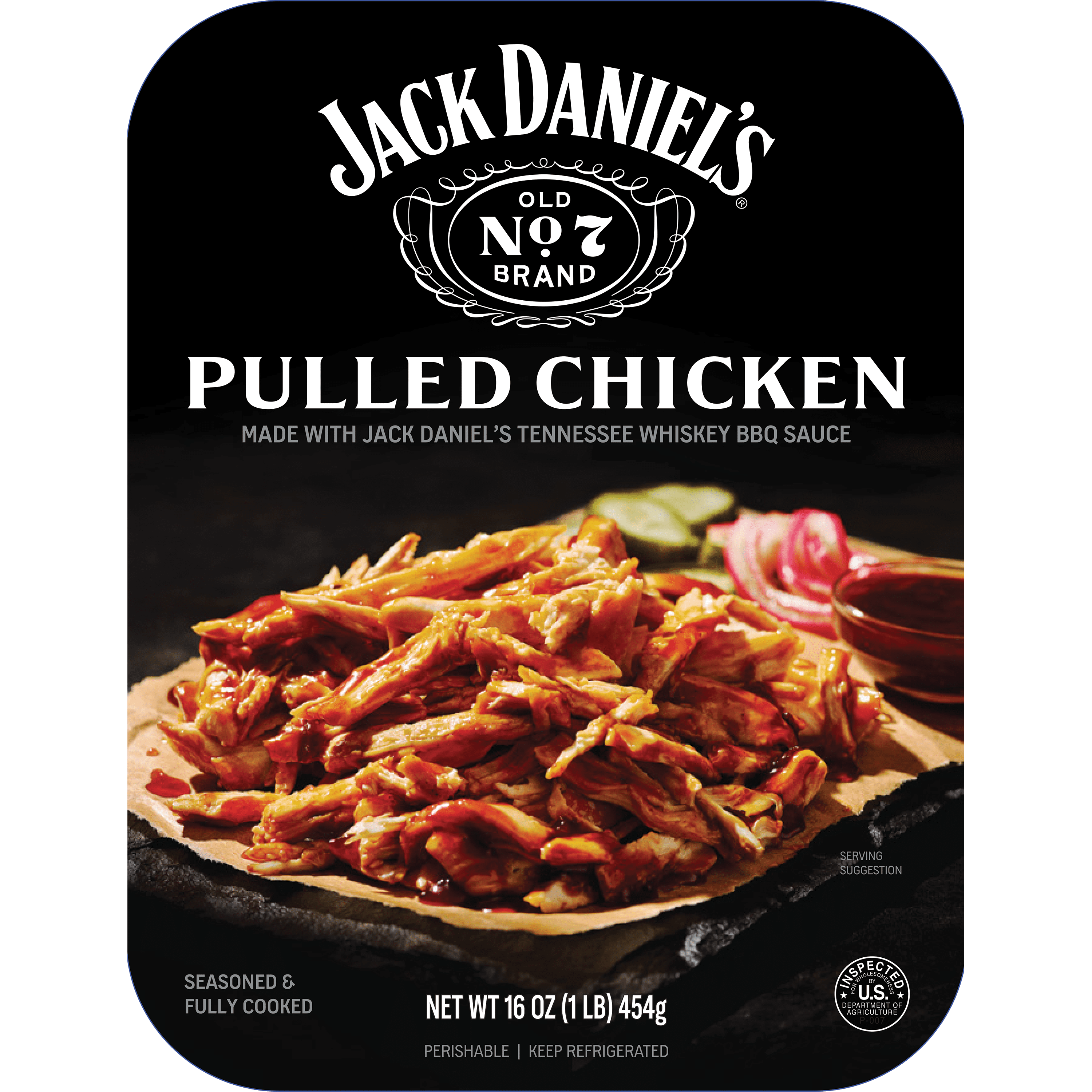 Jack Daniel's Seasoned Pulled Chicken, Fully Cooked, Ready to Heat, 16 oz Tray