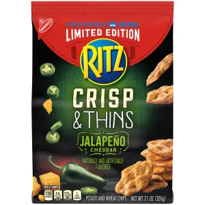 JALAPENO CHEDDAR FLAVORED CRISP & THINS POTATO AND WHEAT CHIPS, JALAPENO CHEDDAR