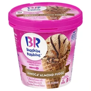 Cream, Nonfat Milk, Chocolate Flavored Ribbon [Corn Syrup, Water, High Fructose Corn Syrup, Cocoa Processed with Alkali, Modified Food Starch, Propylene Glycol, Natural and Artificial Flavors, Potassium Sorbate (Preservative), Carrageenan, Salt], Sugar, Roasted Almonds (Almonds, Safflower and/or Canola Oil), Corn Syrup, Jamoca Coffee Extract [Water, Sugar, Coffee Extract, Potassium Sorbate and Methyl Paraben (Preservatives)], Whey, Stabilizer/Emulsifier Blend (Cellulose Gum, Mono and Diglycerides, Guar Gum, Carrageenan, Polysorbate 80), Fruit Juice for Color (Apple).