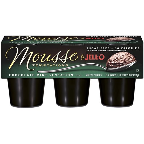 Jell-O Mousse Temptations Sugar-Free Chocolate Mint Sensation Mousse Snack, 2.3 Oz., 6 Count