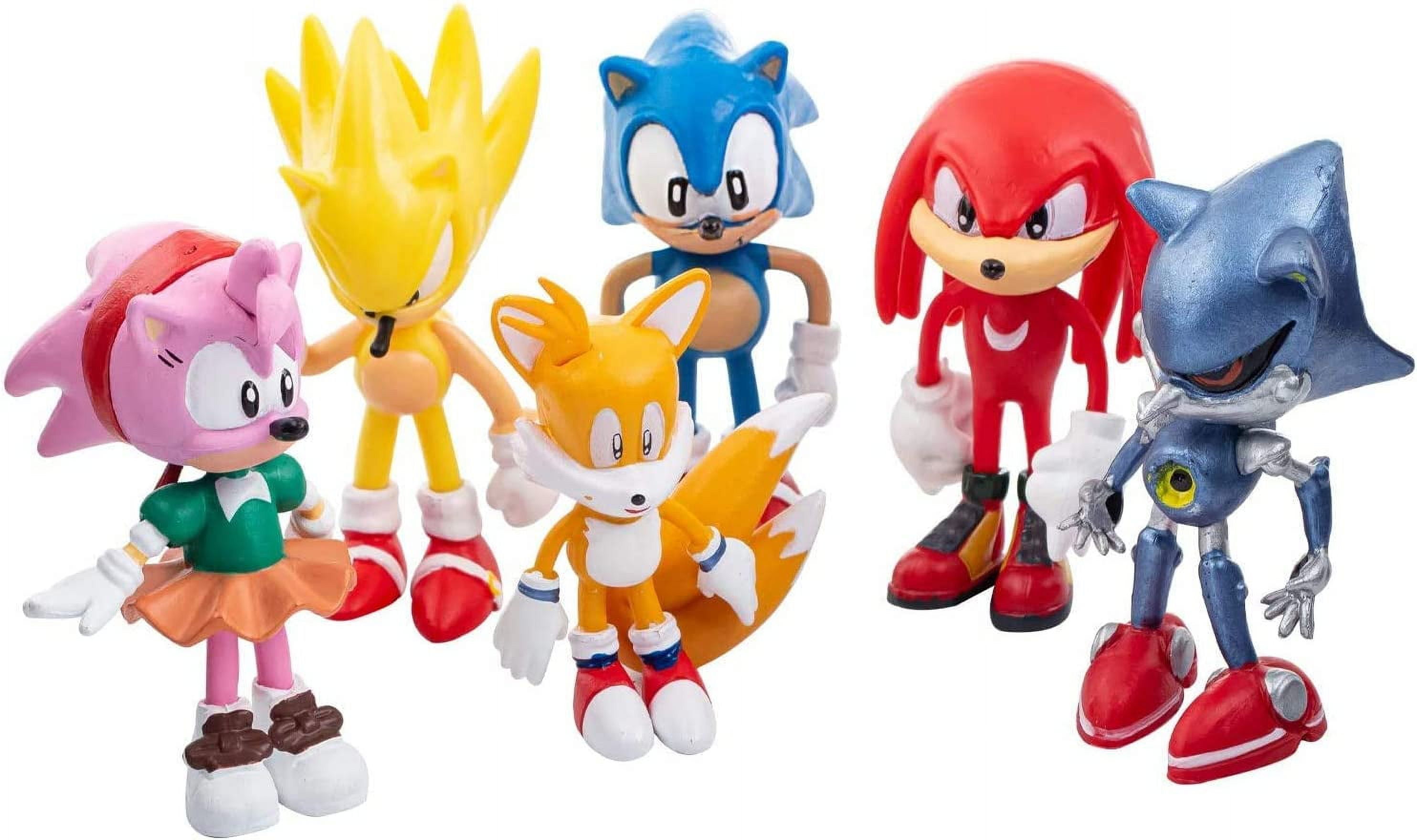 J&G Sonic the Hedgehog Toys Action Figures Party Supplies Cake Toppers, 6 Pack Kids Toys for 3 Years and Elder Birthday Party Supplies for Boys and Girls