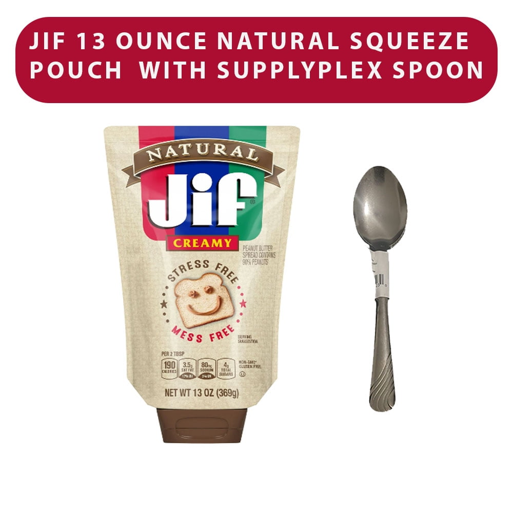 Jif 13 Ounce Natural Squeeze Pouch with supplyplex spoon