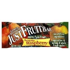 JUST FRUIT BAR, FRUIT BAR, APPLE, RASPBERRY, APPLE, RASPBERRY