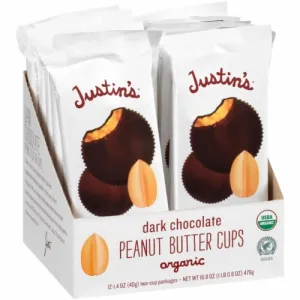 Justin’s Organic Peanut Butter Cups, Dark Chocolate, 1.4 oz (Case of 12)