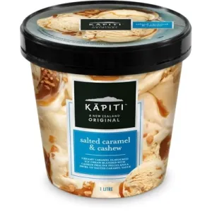 Ice Cream (Fresh Cream, Fresh Whole Milk, Liquid Sugar, Reconstituted Skim Milk, Glucose Syrup<sup>*</sup>, Milk Solids, Caramelised Sugar, Stabilisers (Guar Gum, Locust Bean Gum), Emulsifier (471), Natural Flavours , Salt), Salted Caramel Sauce (12%) (Water, Glucose Syrup<sup>*</sup>, Sugar, Milk Solids, Thickener (1442), Butter (Cream, Salt), Stabiliser (Sodium Alginate), Salt, Preservative (Potassium Sorbate), Acidity Regulator (Citric Acid)), Cashew Praline (4%) (Milk, Cashews)