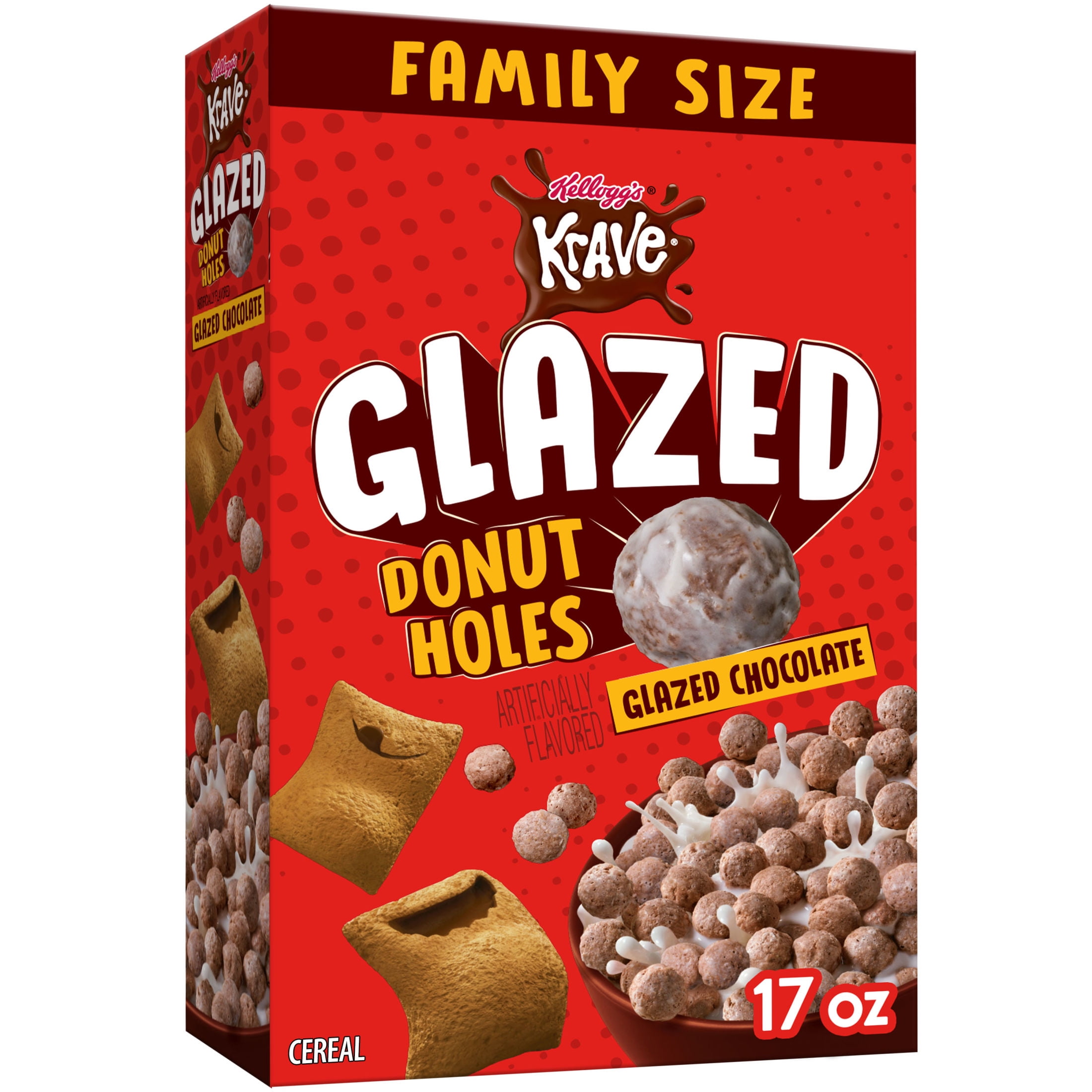 Kellogg's Krave Glazed Donut Holes Breakfast Cereal, Kids Cereal, Family Breakfast, Family Size, Glazed Chocolate, 17oz Box