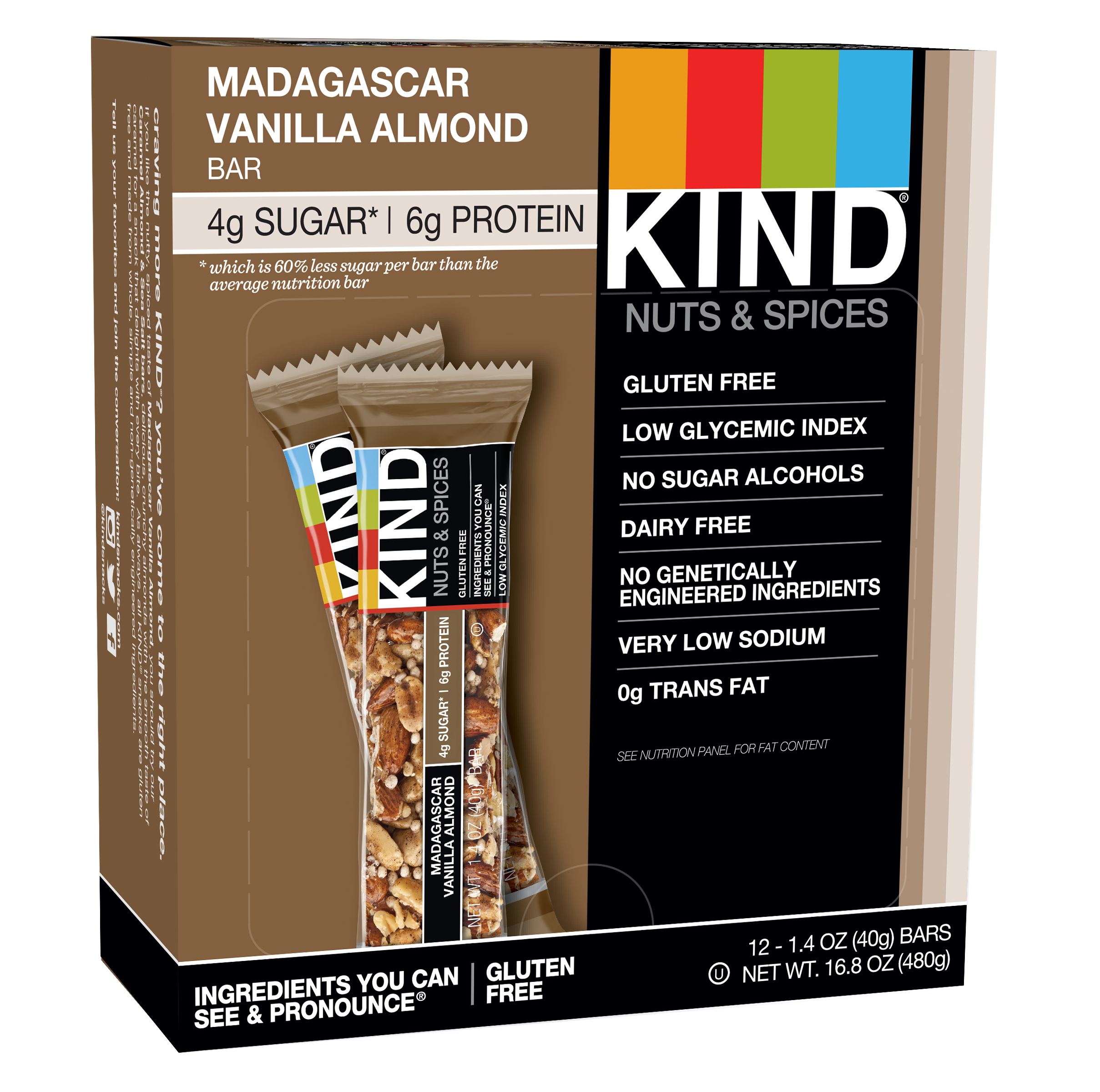 KIND Bars, Madagascar Vanilla Almond, Gluten Free, Low Sugar, 1.4oz, 12 Count