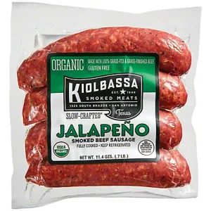 KIOLBASSA ORGANIC SMOKED BEEF SAUSAGE, JALAPENO, 4 CT