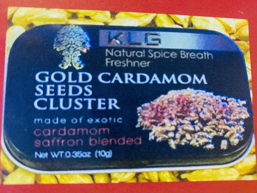 KLG Gold Cardamom Seeds Cluster Mint Natural Spice Breath Freshener w/24k Edible Gold