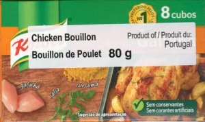 Salt, Hydrogenated Vegetable Oil, Non-hydrogenated Palm Oil, Flavour Enhancers (Monosodium Glutamate, Disodium Guanylate, Disodium Inosinate), Starch, Chicken Fat 3,1%, Aromas, Chicken, Turmeric, Parsley, Caramel Syrup, Maltodextrin, Antioxidant (Rosemary Extract)