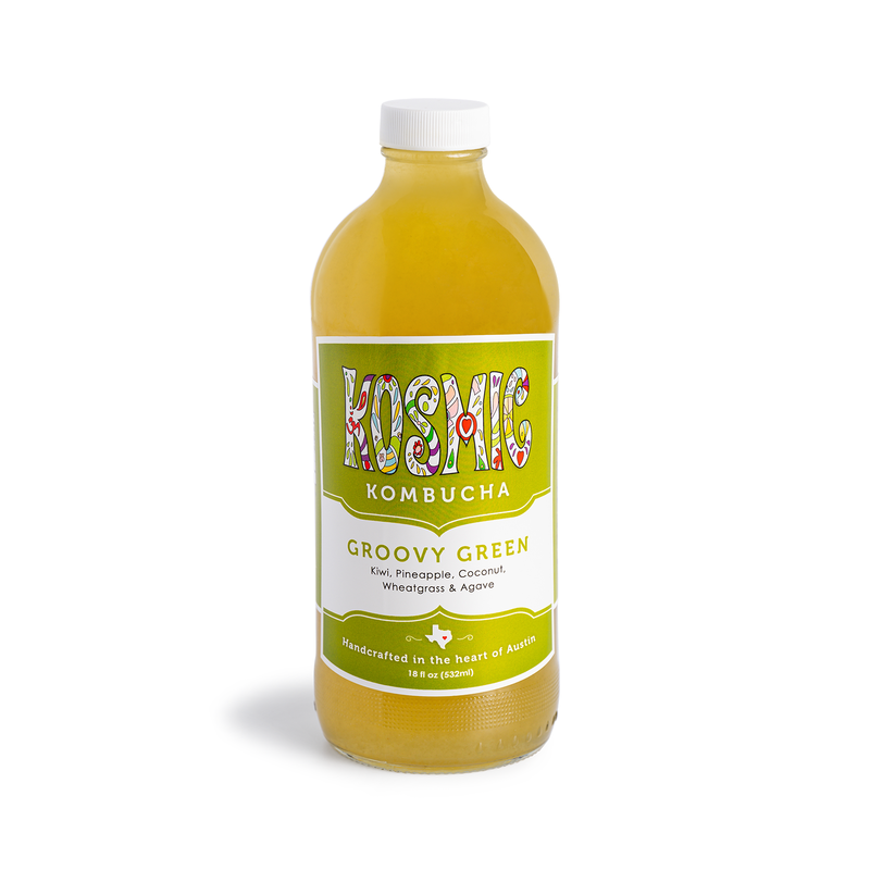 ORGANIC KOMBUCHA (PURIFIED WATER, ORGANIC TEA AND ORGANIC CANE SUGAR), KIWI JUICE, PINEAPPLE JUICE, COCONUT ESSENCE, WHEATGRASS POWDER, AGAVE.