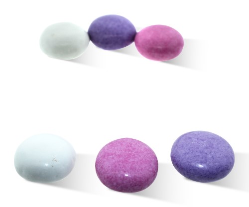 Sugar, Cocoa Mass, Cocoa Butter, Coloring (Includes: Titanium Dioxide, Yellow 5, Beet Powder, Blue 2), Gum Arabic, Lecithin (A Sunflower Derivate Emulsifier), Flavor: Natural Oil Of Peppermint