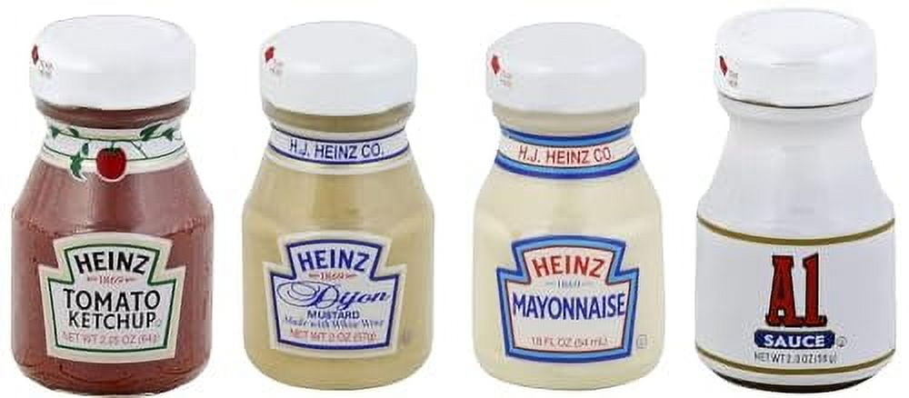 Kosher Travel Condiment Bundle of 4 Miniature Jars: Heinz Ketchup 2.25 oz, Heinz Dijon Mustard 2 oz, Heinz Mayonnaise 1.8 oz, A1 Steak Sauce 2 oz