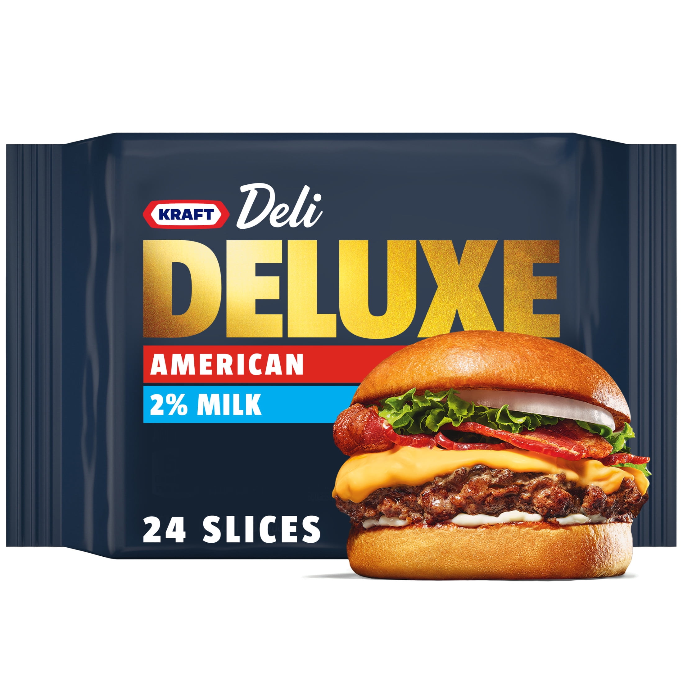 Kraft Deli Deluxe Cheese Slices, 2% Milk Reduced Fat American Cheese, 24 ct - 16.0 oz Wrapper
