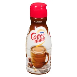 Hazelnut-flavored coffee whitener provides a smooth, creamy texture that blends quickly into hot or cold beverages. Commonly used to enrich coffee, lattes, cappuccinos and iced drinks. Reviewers report pronounced nutty flavor, easy dissolution and consistent performance; some note sweetness level, occasional artificial aftertaste, packaging convenience and shelf stability noted.