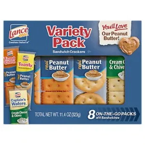 Lance Variety Pack with ToastChee and Toasty with Peanut Butter and Captain's Wafers with Cream Cheese Sandwich Crackers, 8 Ct