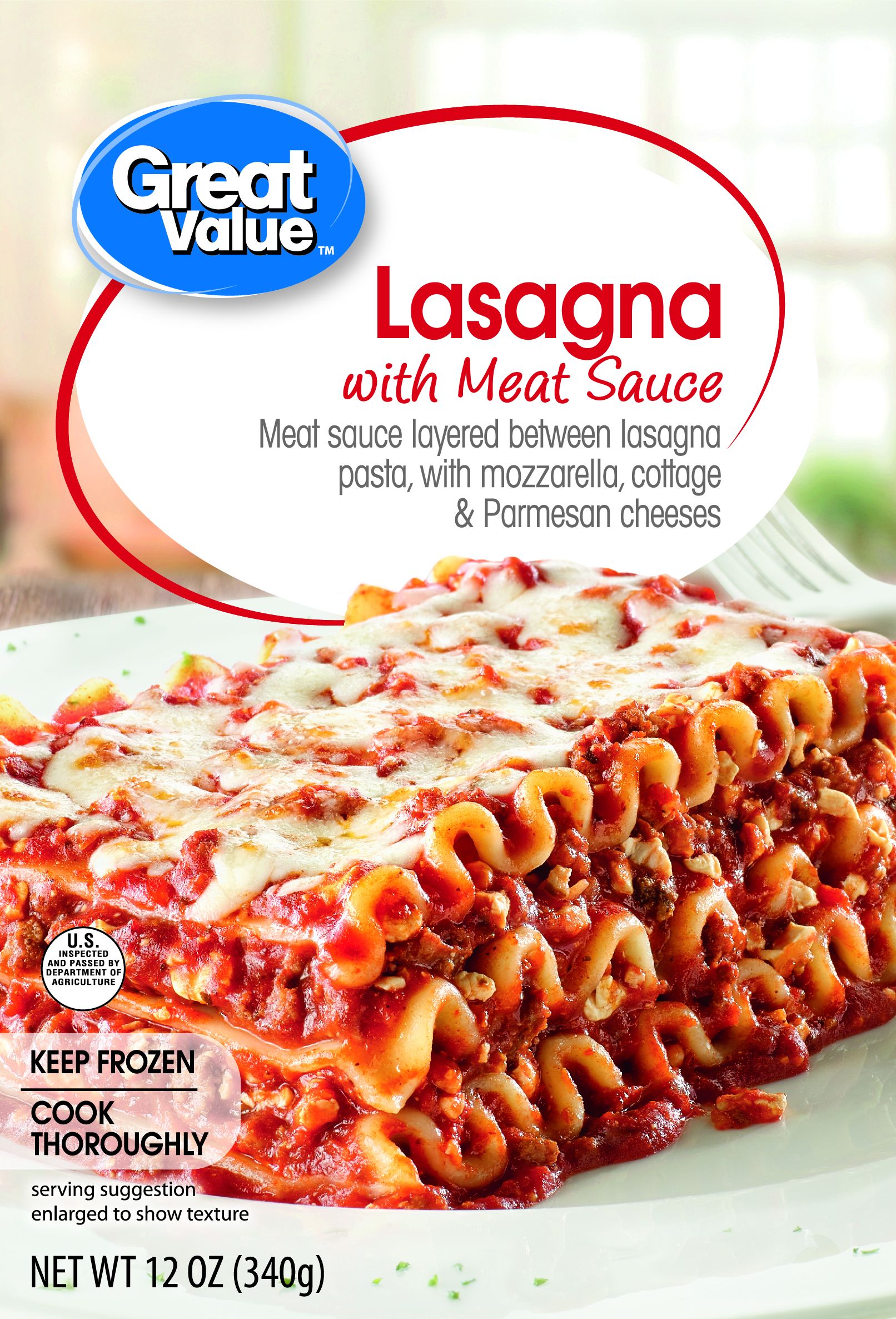Tomato Puree (Water, Tomato Paste, Tomatoes (Tomatoes, Tomato Juice, Citric Acid)), Cooked Pasta (Water, Semolina (Milled Wheat, Niacin, Ferrous Sulfate, Thiamine Mononitrate, Riboflavin, Folic Acid)), Cooked Beef, Mozzarella Cheese (Pasteurized Part-skim Milk, Cheese Cultures, Salt, Enzymes), Cottage Cheese (Fat Free Milk, Milk, Cream, Nonfat Dry Milk, Whey, Salt, Guar Gum, Mono And Diglycerides, Carrageenan, Locust Bean Gum, Polysorbate 80, Potassium Sorbate (To Protect Flavor), Microbial Enzymes), Sugar, Parmesan Cheese (Pasteurized Part-skim Milk, Cheese Cultures, Salt, Enzymes), Onion, Modified Cornstarch, Beef Broth Flavor (Beef Broth (Contains Natural Flavor), Salt, Hydrolyzed Soy Protein, Caramel Color), Salt, Spices, Xanthan Gum, Garlic Powder
