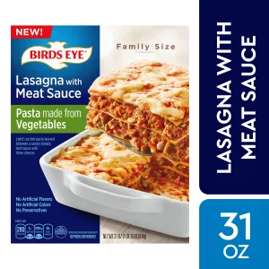 water, lentil zucchini pasta (lentil flour, zucchini, water), tomato paste, cauliflower, crushed tomatoes in puree (diced tomatoes, tomato puree, citric acid), cottage cheese (cultured pasteurized grade a skim milk), part-skim mozzarella cheese (pasteurized part-skim milk, skim milk, salt, cultures, enzymes), cooked beef patty crumbles (ground beef, seasoning (flavorings, salt, spices, dextrose), tomato paste, salt, soybean oil), onions, parmesan cheese (part-skim milk, cheese culture, salt, enzymes), less than 2% of: modified corn starch, soy sauce (water, wheat, soybeans, salt, alcohol, vinegar, lactic acid), sugar, canola oil, salt, mushroom powder, garlic, olive oil, basil parsley, oregano