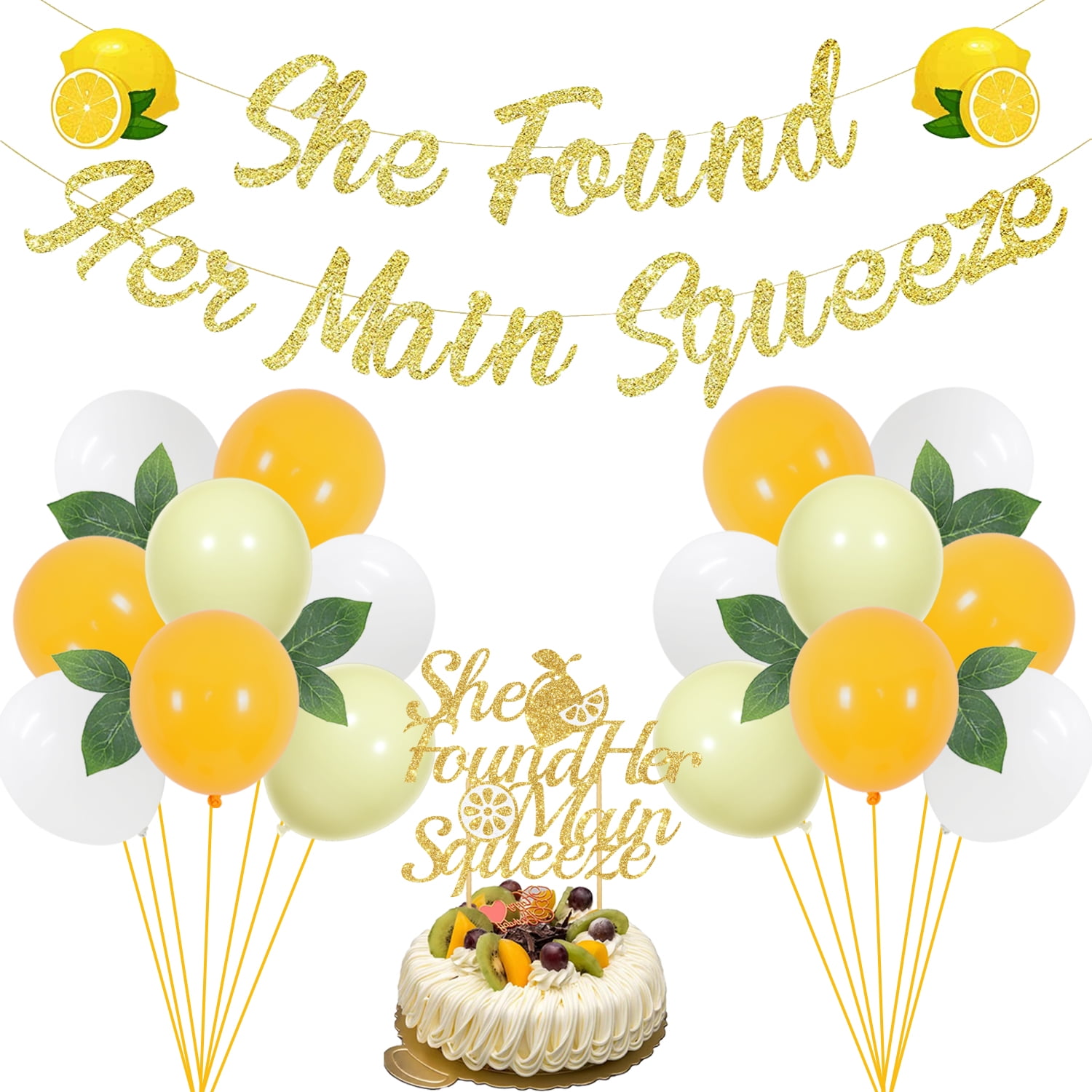Lemon Bridal Shower Balloon Decorations She Found Her Main Squeeze Banner Cake Topper Kit Lemon Theme Wedding Bachelorette Party Decorations Supplies