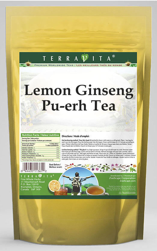 Ginseng Root, Lemon Peel, Lemongrass, Natural Flavors, Pu-erh Tea